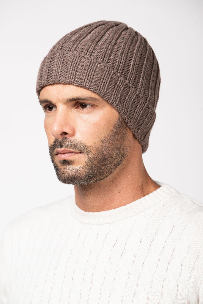 - Berretto morbido e caldo lavorato a 4 fili di cashmere con lavorazione a coste larghe.